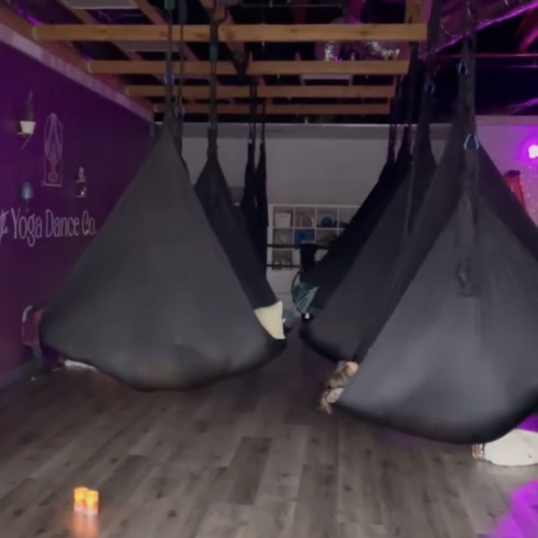 At The Yoga Dance Co, our evening restorative aerial yoga class offers a sanctuary from the chaos of daily life. Guided by Auburn, whose gentle presence creates a nurturing environment, the class uses a combination of hammocks, grounding rituals, mindful mantras, and soothing music to help you sink into stillness. The result? You leave feeling calm, refreshed, and truly restored.