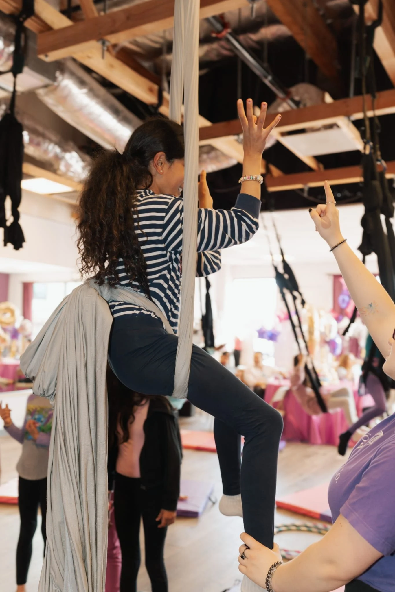 In a world that often pushes us to “do more” or “be better,” aerial yoga invites you to slow down and celebrate every little step. Maybe you held your inversion for 10 seconds longer than last time. Maybe you stayed present in your body for an entire class. Maybe you just showed up on a tough day.